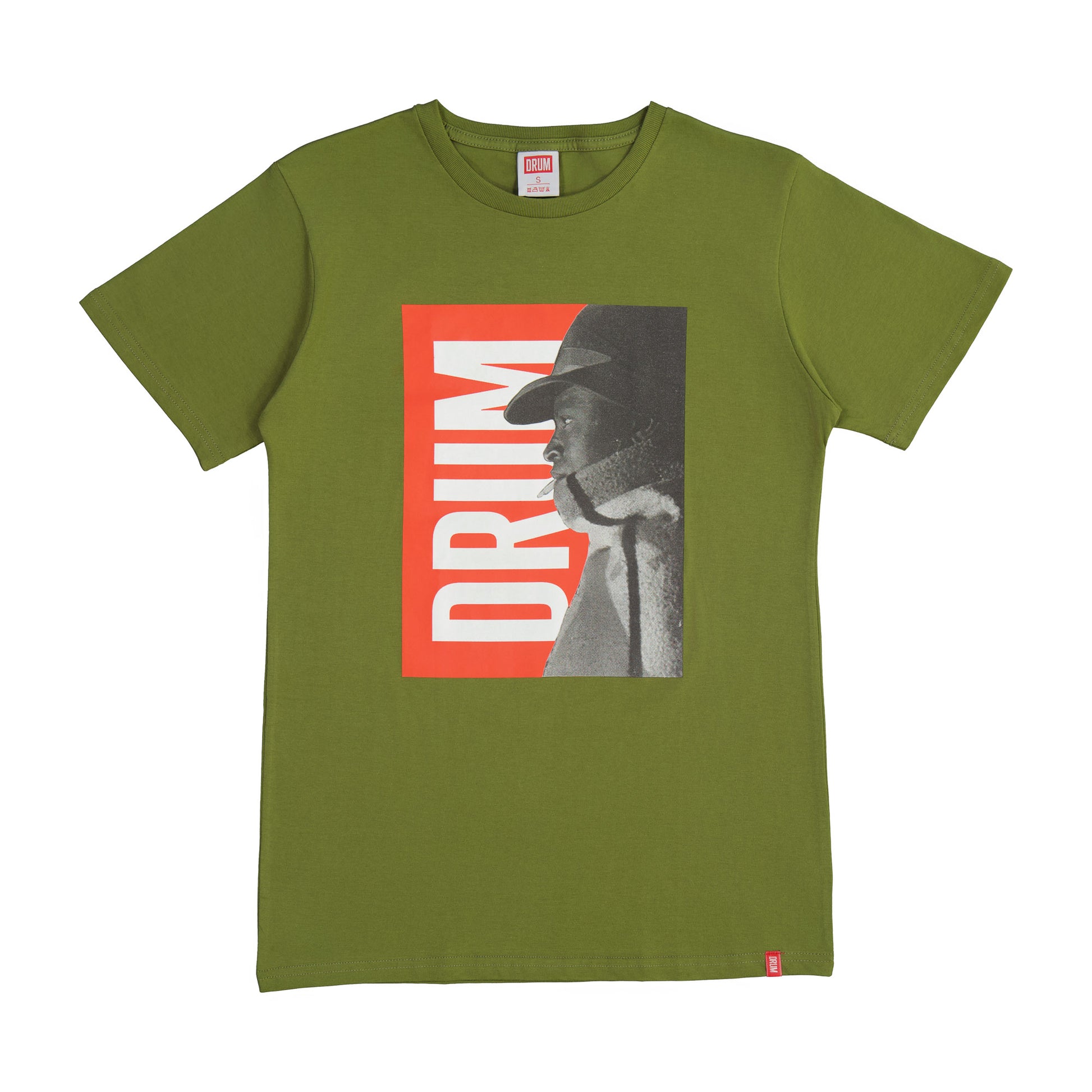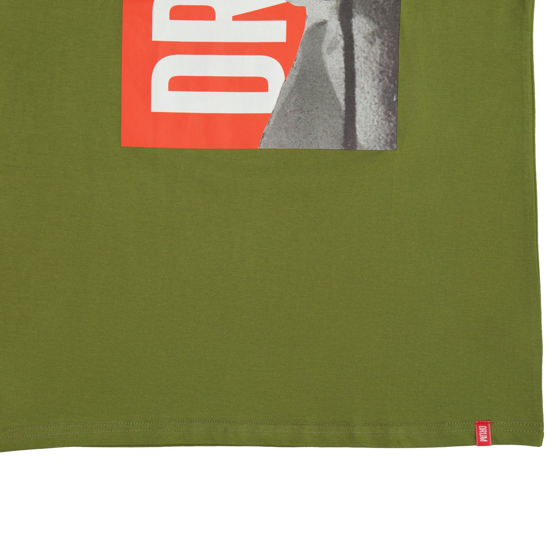 - Drum logo detail on hem label